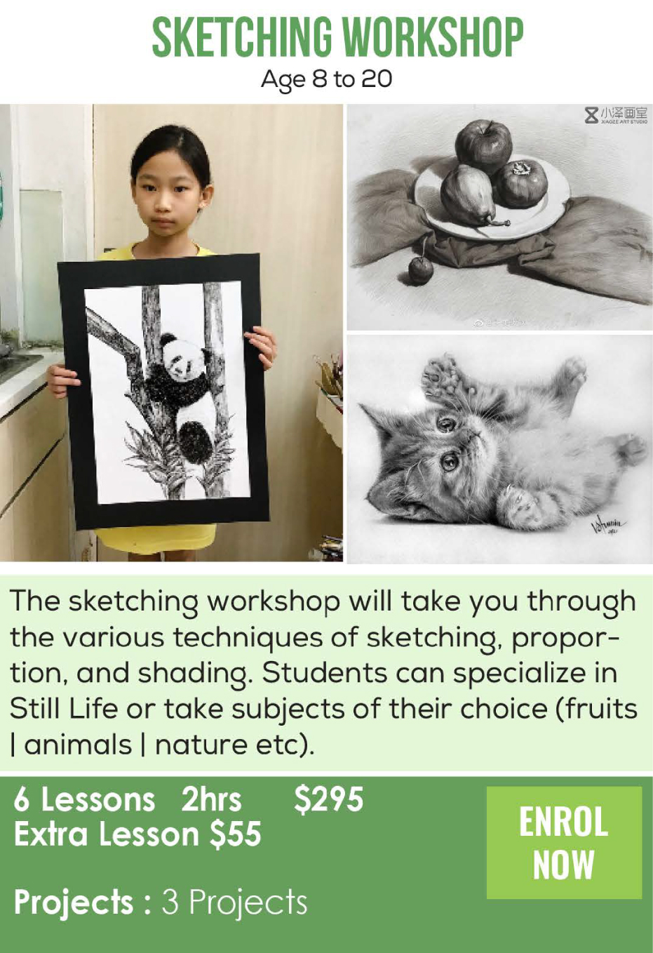 We focus not only on technique, but on nurturing discipline, observation, and self-expression — helping young artists build skills that extend far beyond the studio.